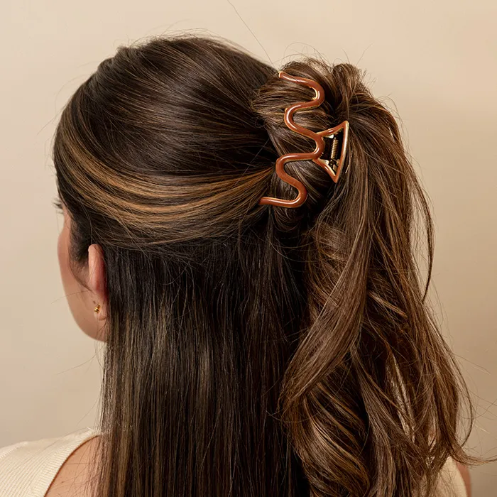 Da un toque de elegancia y estilo a tu peinado con el Hair Clip Curves. Este gancho metálico dorado es la combinación perfecta de funcionalidad y diseño moderno, ideal para cualquier ocasión.