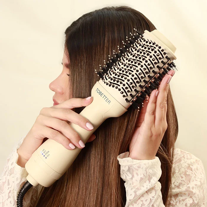 Con solo unas pasadas, el Cepillo Secador TOBETTER entrega un look profesional. Su combinación de calor cerámico, iones negativos y diseño ovalado seca, da volumen y reduce frizz sin esfuerzo. ¿Lo mejor? Se calienta rápido, es fácil de usar y trae aire frío para fijar el estilo.